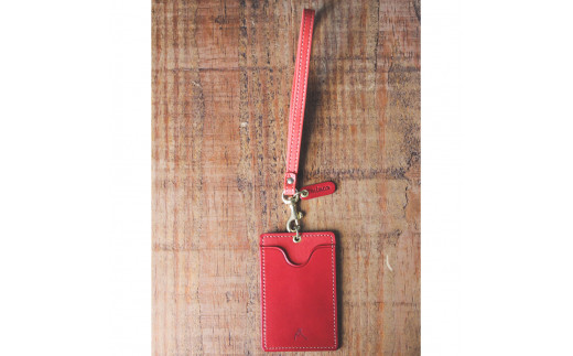 - 【minca】栃木レザーのストラップ付タテ型パスケース 定期入れ 職人の手仕事 パスホルダー01+ストラップS/レッド 706【雑貨 日用品 人気 おすすめ 】