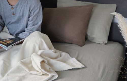 【tissu de coton/ダブルガーゼ】シングルフラットシーツ&ピローケースセット(オリーブ) G1962