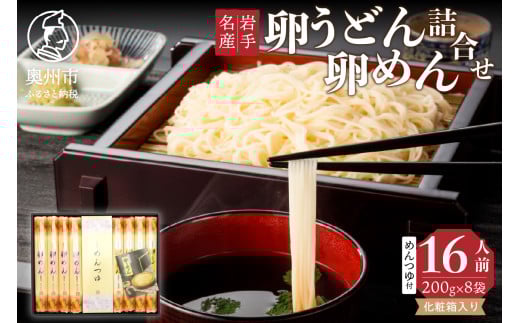 【10月1日より価格改定】お中元・贈答用 卵めん、卵うどんの詰め合わせ 各200g×4袋 <めんつゆ付き> 食楽佳味 無添加 岩手名産 のし対応 [K0030]
