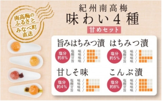 特選A級 紀州南高梅 味わい4種甘めセット800g 千年の知恵 梅干し 和歌山県産 hoso010