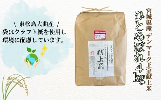 【令和7年産米先行予約】【栽培期間中化学肥料・農薬2分の1以下】【デンマーク王室献上米】 令和7年産 特別栽培米 ひとめぼれ 精米 4kg 宮城県 東松島市産 栽培期間中 化学肥料 農薬 2分の1以下 宮城県 東松島市 単一原料米 米 こめ おこめ 減農薬 佐藤農園 オンラインワンストップ 自治体マイページ【C】