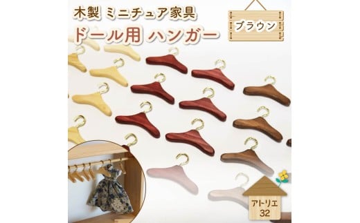 - ミニチュア 家具 ドール用 ハンガー 6.5cm 8本 ブラウン 木製 木工品 インテリア 木 おもちゃ 人形用 静岡県 藤枝市