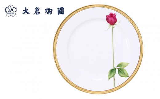 - 【手描き】一本の薔薇レッド30cmサービスプレート〈大倉陶園〉