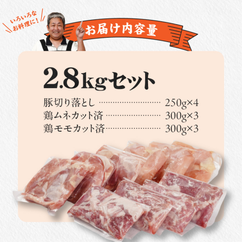 使いやすさ抜群!宮崎県産鶏肉(カット済)&豚肉切り落とし2.8kgセット_13-8401