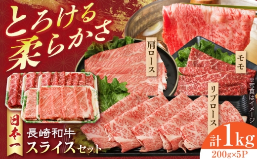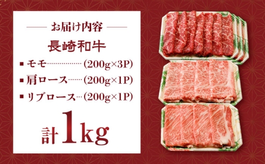 長崎和牛 モモスライススペシャル 計1kg(モモ600g・肩ロース200g・リブロース200g)長崎県/有限会社シュシュ [42AEAA026]