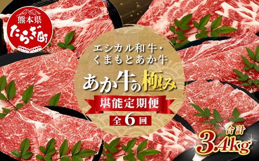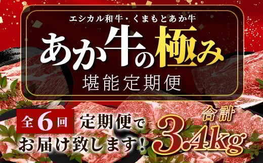 - 【定期便6回】エシカル和牛・くまもとあか牛《あか牛の極み 堪能》 定期便 (合計 3.4kg) 肩ロース バラ モモ カタ 焼肉 すき焼き しゃぶしゃぶ 熊本 あか牛 牛肉 小分け 定期便 和牛 国産 SDGs 033-0518