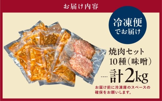 焼肉セット10種(味噌)【 味付け 味噌 簡単 BBQ バーベキュー 牛タン 牛カルビ 牛ウデ 牛肩ロース 牛さがり 豚トロ ハンバーグ ホルモン 鶏もも 豚カルビ 小分け 冷凍保存 】