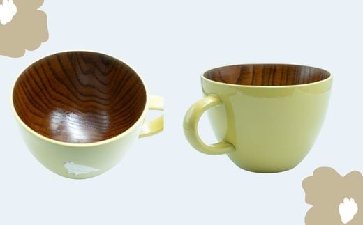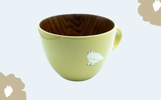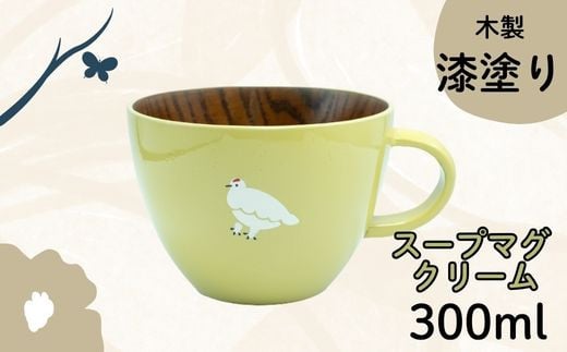 - 【クリーム】漆絵入り 木製スープマグ(Ba-033)