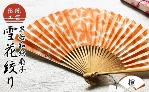 伝統工芸 黒谷和紙扇子 雪花絞り 女性用 (橙) 【 和紙 扇子 京都 綾部 贈り物 贈答 プレゼント ギフト 記念日 誕生日 日用品 工芸品 】