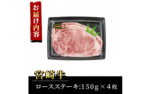 - 宮崎牛ロースステーキ(計600g・150g×4枚)A4 A5 牛肉 精肉 お肉 お取り寄せ 黒毛和牛 ブランド和牛 冷凍 焼肉 国産 BBQ 焼肉 バーベキュー【P-19】【南日本フレッシュフード株式会社(日本ハムマーケティング株式会社)】