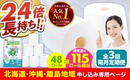 - 【北海道・沖縄・離島用】【隔月配送 全3回定期便】トイレットペーパー シングル 長巻き 130m 6ロール×8パック エコ ワンタッチ コアレス《豊前市》【大分製紙】 日用品 消耗品 常備品 大容量 [VAA151]