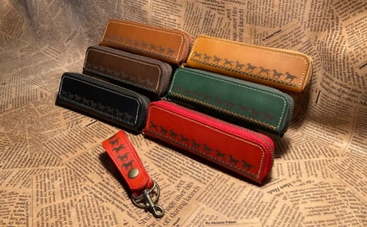 - 馬九いくキーリング(レッド)&馬九いくラウンドファスナーペンケース(ダークブラウン) 栗東市 / 株式会社ブルズエフ [BIAU114]