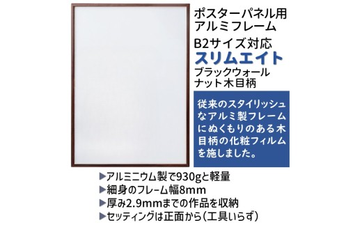 スリムエイト B2 ポスターフレーム 木目柄 ブラックウォールナット 前開き式 アルミ額縁 ソフケン フレーム