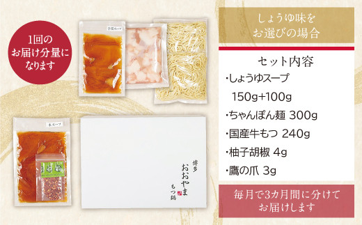 W65-83 【定期便3ヶ月】福岡売上No1 博多もつ鍋おおやまもつ鍋しょうゆ味2人前