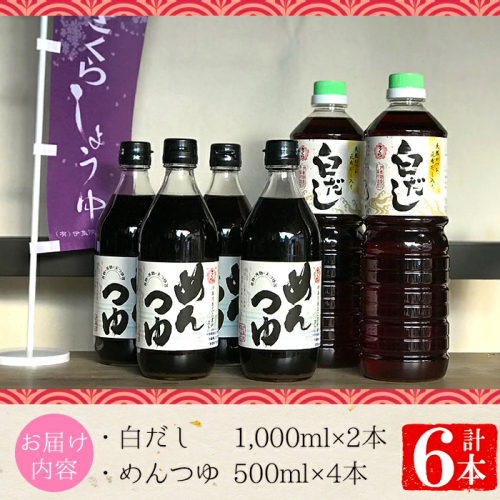 No.304 さくら白だし めんつゆセット(白だし 各1000ml×2本・めんつゆ 500ml×4本) 鹿児島 麺 つゆ だし 出汁 調味料 ストレート 鰹 さくらしょうゆ セット【伊集院食品工業所】