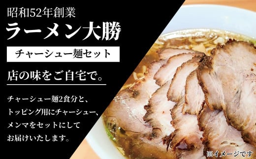 - ラーメン大勝 チャーシュー麺セット 〈 老舗名店 ラーメン 煮干し 醤油 美味しい お取り寄せ グルメ セット らーめん ちぢれ麺 麺 拉麺 スープ付き チャーシュー メンマ 冷凍 冷凍食品 おすすめ 取り寄せ ご当地ラーメン ご当地 〉