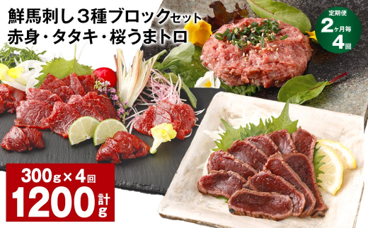 【2ヶ月毎4回定期便】鮮馬刺し 3種ブロックセット 赤身・タタキ・桜うまトロ