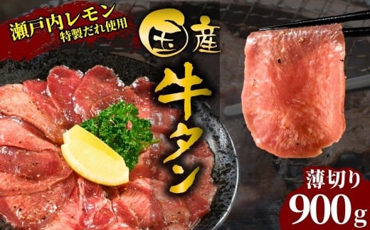 【国産牛たん定期便】国産牛タン 薄切り 900g 瀬戸内レモン塩だれ 尾野精肉店の牛タン【国産牛 牛肉 牛たん 味付き 焼肉 BBQ 数量限定 真空パック 小分け 冷凍 広島県 竹原市】