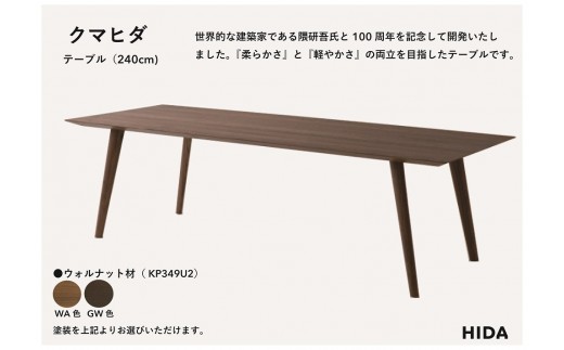 - 【飛騨の家具】HIDA クマヒダ テーブル ウォルナット 幅240(KP349U2)|飛騨高山 伝統工芸 匠 日本 和風 インテリア ダイニング 机 テーブル飛騨産業 CG456