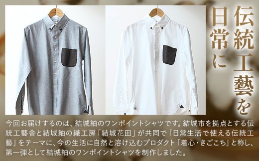 - 着心 結城紬 の ワンポイントシャツ グレイ Sサイズ 株式会社TMO結城《30日以内に出荷予定(土日祝除く)》 茨城県 結城市 シャツ ワンポイント 一点物 綿100% 絹100%