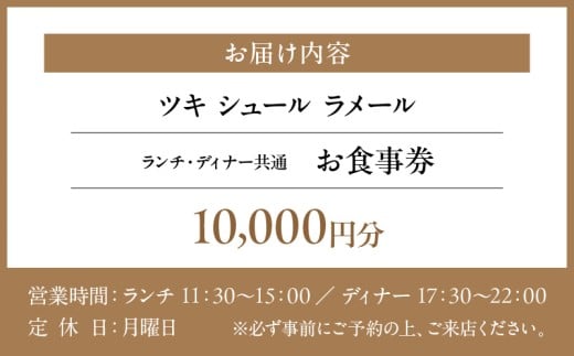 【ツキ シュール ラメール】《ランチ・ディナー共通》10,000円分お食事券(ぐるなびセレクション)