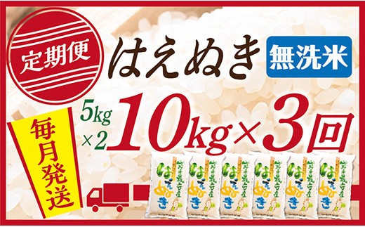 【定期便】【無洗米】令和7年産 山形県産 はえぬき 10kg (5kg×2) 3回配送