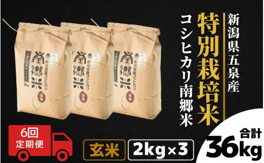 - 令和7年産 新米 【 定期便 6ヶ月 】 玄米 6kg ( 2kg × 3袋 ) × 6回 五泉産 コシヒカリ 南郷米 特別栽培米 | げんまい こしひかり お米 おこめ コメ こめ 新潟県 五泉市 ファームみなみの郷