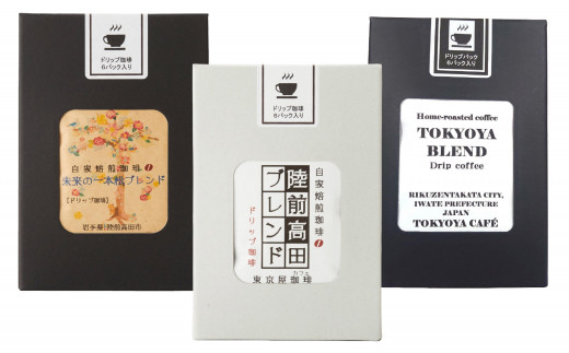 【自家焙煎】東京屋ドリップコーヒー3種×各6パックセット (計18パック) 【 お手軽 簡単 飲み比べ ドリップ コーヒー 焙煎 アイス ホット ギフト 岩手 陸前高田 】