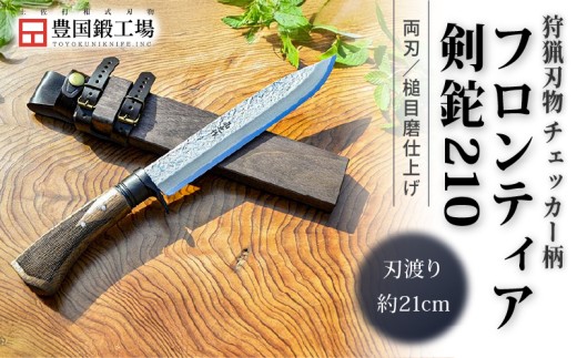 フロンティア剣鉈 210 両刃 土佐オリジナル白鋼 チェッカー柄 | ナイフ キャンプ アウトドア 打刃物 土佐 鉈 なた 職人 山林 狩猟 刃物 薪割り ハンドメイド 釣り 伝統 工芸 高知県 南国市