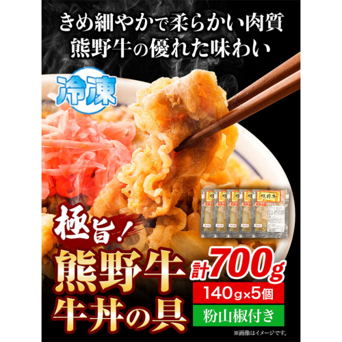 極旨!熊野牛 牛丼の具5個セット(粉山椒付き)《30日以内に出荷予定(土日祝除く)》 和歌山県 日高町 熊野牛 牛 うし 牛肉 牛丼用 お惣菜 澤株式会社(Meat Factory)