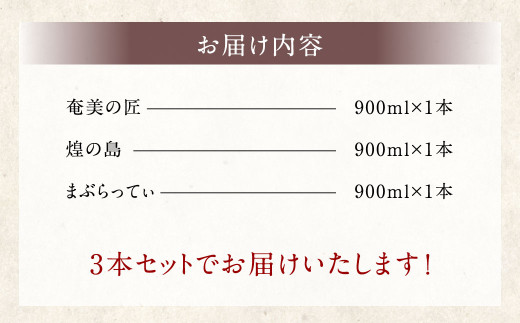 - 徳之島の黒糖焼酎 飲み比べセット900ml×3本 計2.7L 3種類 奄美の匠 煌の島 まぶらってぃ 黒糖 焼酎 酒 AG-18