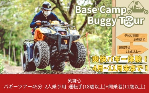 剣謙心バギーツアー45分 2人乗り用 運転手(18歳以上)+同乗者(11歳以上)アウトドア 自然体験 ※2025年8~10月利用不可【022S044】