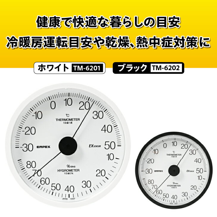 - 【ふるさと納税】【10月1日より価格改定】 エクストラ温・湿度計 TM-6201 / TM-6202 選べるカラー ホワイト / ブラック 感染症対策 健康管理 シンプル 見やすい アナログ式 電池不要 壁掛用 [AJ117]