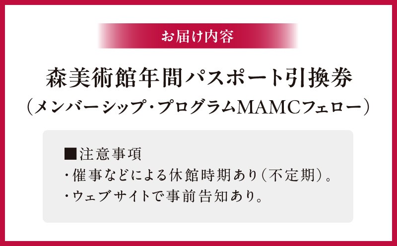 - 【六本木ヒルズ】森美術館年間パスポート (森美術館メンバーシップ フェロー入会)