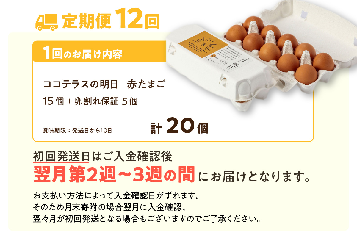 - 【12ヵ月定期便】ココテラスの明日(赤たまご)15個 + 5個保証(計20個)【JGAP認証】