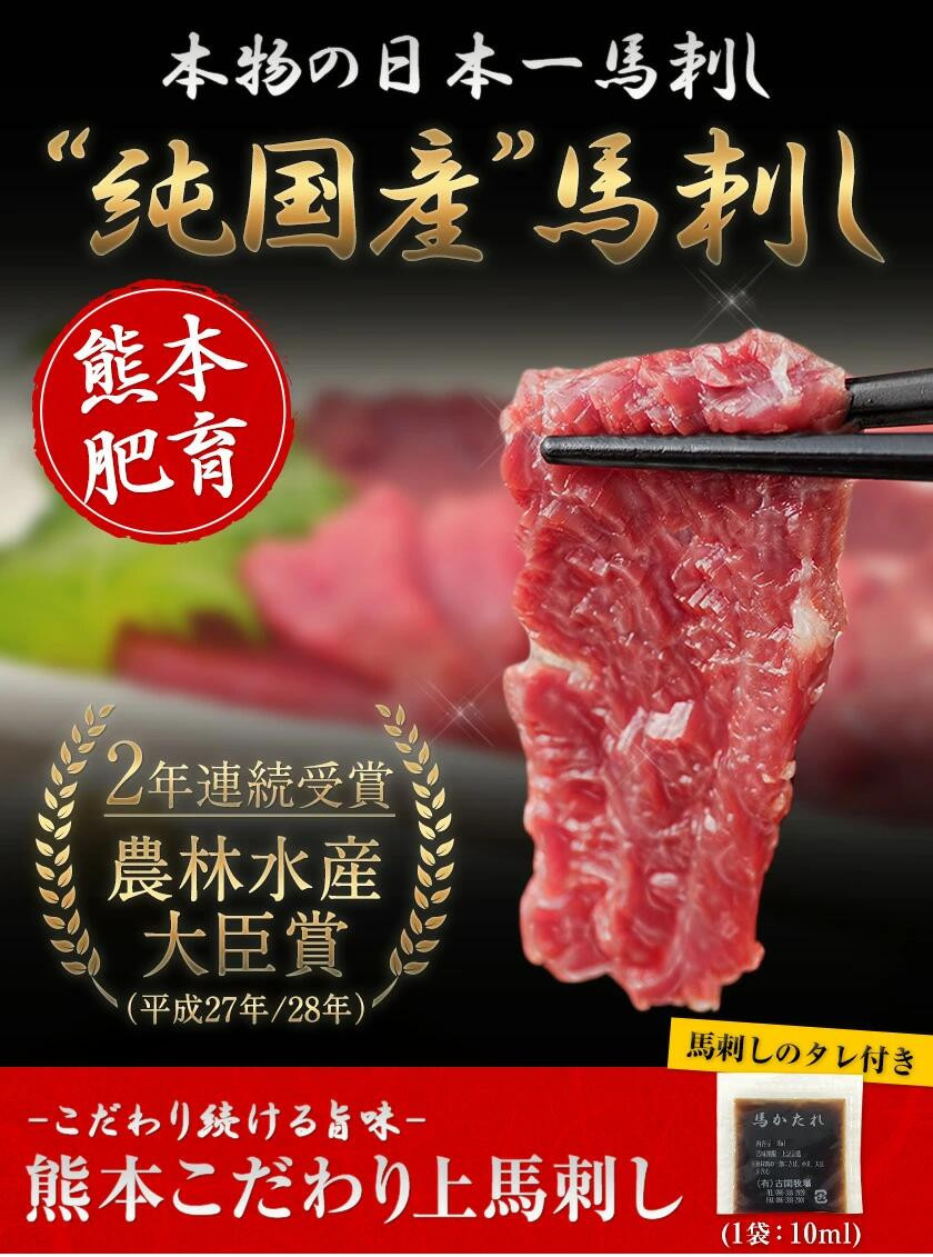 - 馬刺し 上赤身 ブロック 国産 熊本肥育 冷凍 生食用 たれ付き(10ml×3袋) 100g×3セット 肉 期間限定 絶品 牛肉よりヘルシー 馬肉 予約 平成27年28年 農林水産大臣賞受賞 熊本県大津町《90日以内に出荷予定(土日祝除く)》