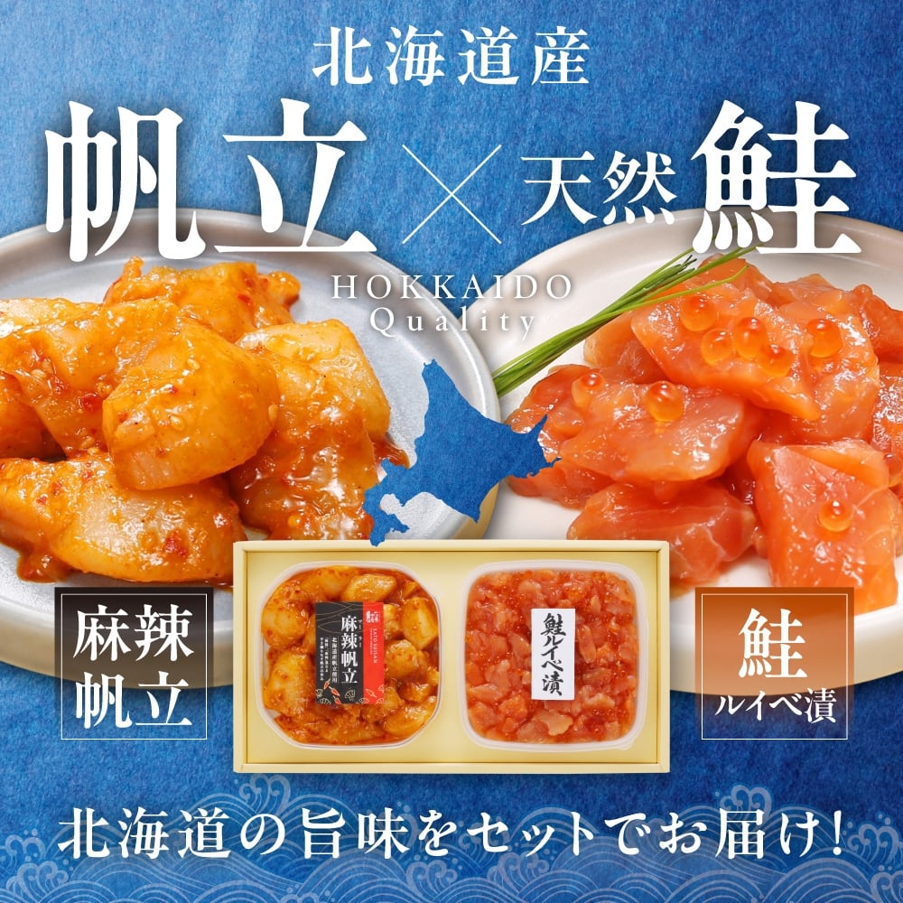 佐藤水産 鮭ルイベ漬と麻辣帆立セット(鮭ルイベ漬320g・麻辣帆立300g)
