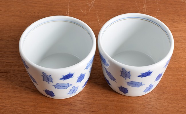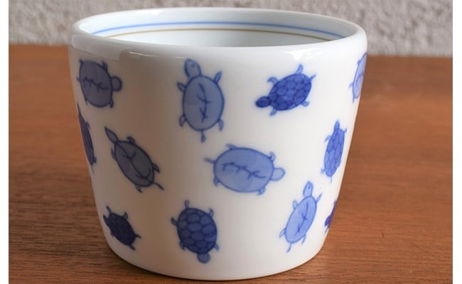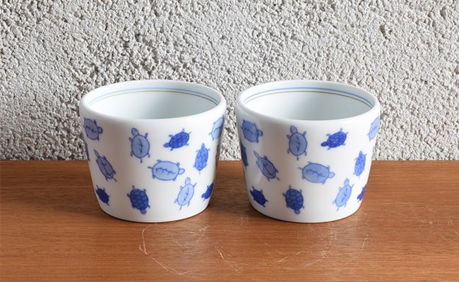 有田焼 染付亀 ペア削り型 蕎麦猪口【深川製磁】食器 器 うつわ そば食器 そば猪口 そばちょこ カップ フリーカップ 2個 セット ペア 縁起物 亀 カメ 染付 ブルー かわいい 電子レンジ対応 A55-154