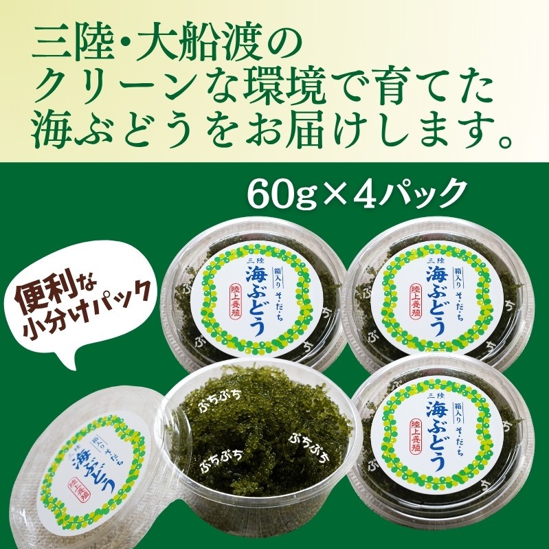 三陸 海ぶどう 240g (60g×4p) 季節限定 プチプチ食感 海ぶどう 海ブドウ うみ ぶどう ウミブドウ 新鮮 直送 お刺身 刺し身 刺身 お土産 健康 栄養 美容 ダイエット ミネラル マグネシウム カルシウム 鉄分 サラダ おつまみ 海藻 グリーンキャビア ごはん 夕飯 おかず 米 丼 岩手 三陸 大船渡 10000円 1万円