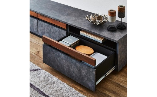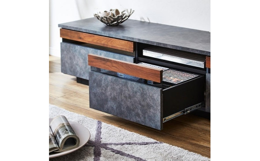 - テレビボード 幅180☆ 天然木 ウォールナット無垢材 グレー カラー:DGY