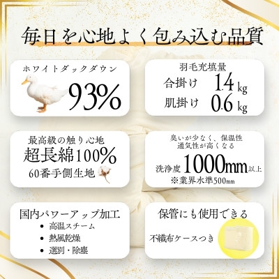 羽毛布団 2枚で1枚のタイプ オールシーズン エクセルゴールドラベル ダブルサイズ