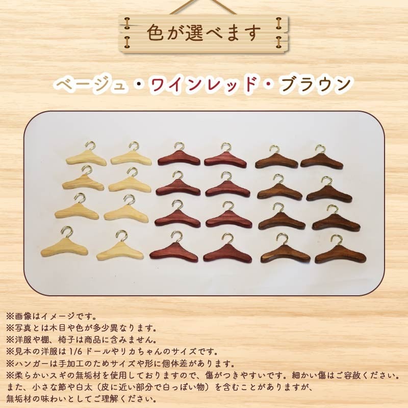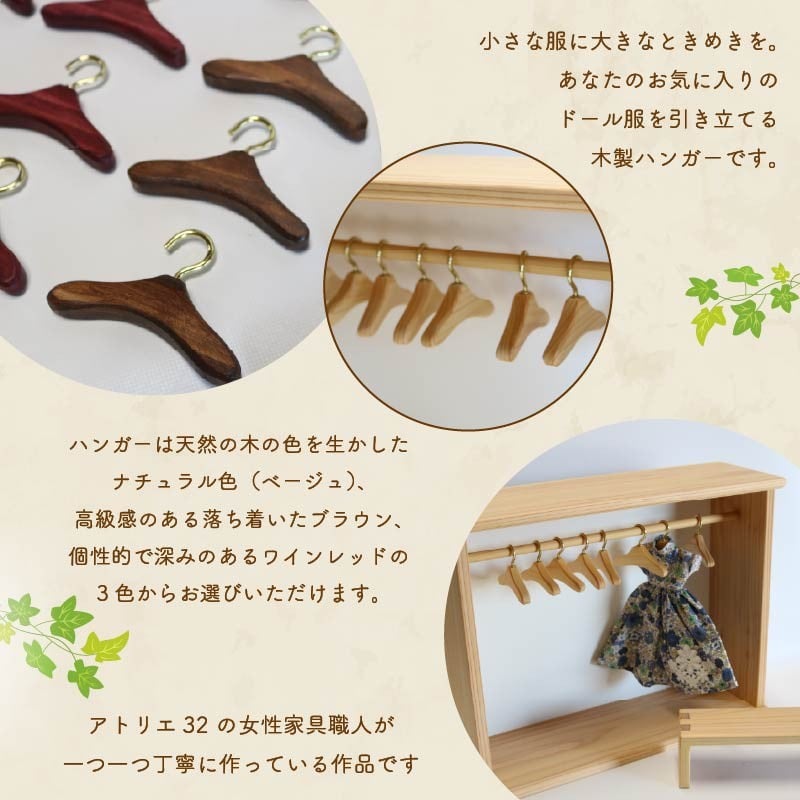 ミニチュア 家具 ドール用 ハンガー 6.5cm 8本 色が選べる ベージュ ブラウン ワインレッド 木製 木工品 インテリア 木 おもちゃ 人形用 静岡県 藤枝市