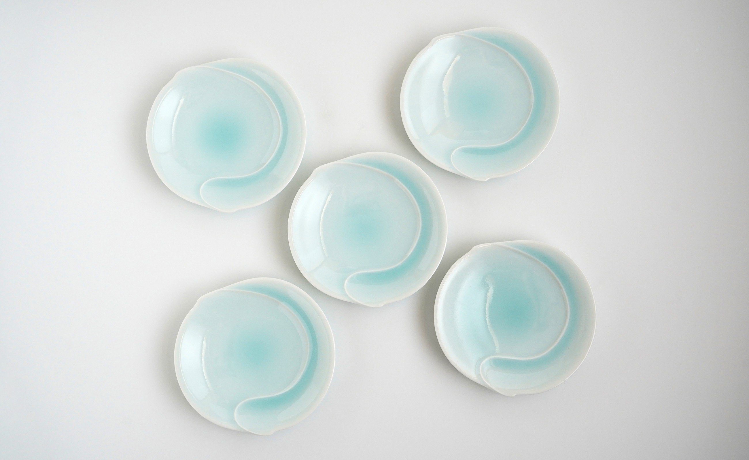 - 有田焼 青白磁稜線銘々皿 5枚組【貴好人】取皿 ケーキ皿 和皿 シンプル 贈り物 お祝い モダン おしゃれ 大人 上品 和菓子 デザート 5枚 セット A35-358