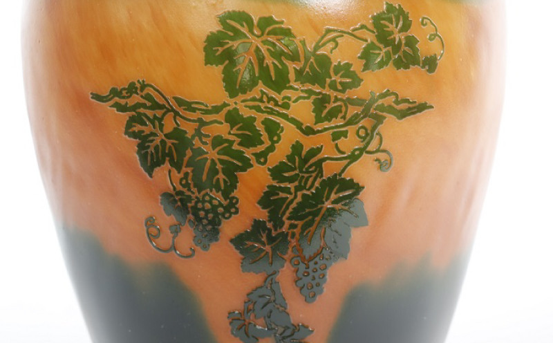 高級色被ガラス仕様のアールヌーボー調ガラス大花瓶【デザイン=甲州葡萄】