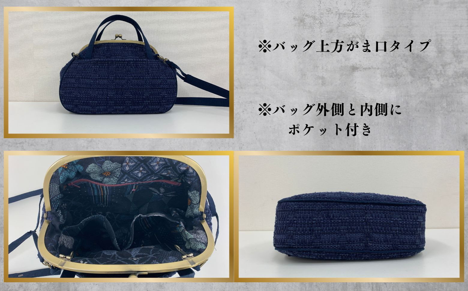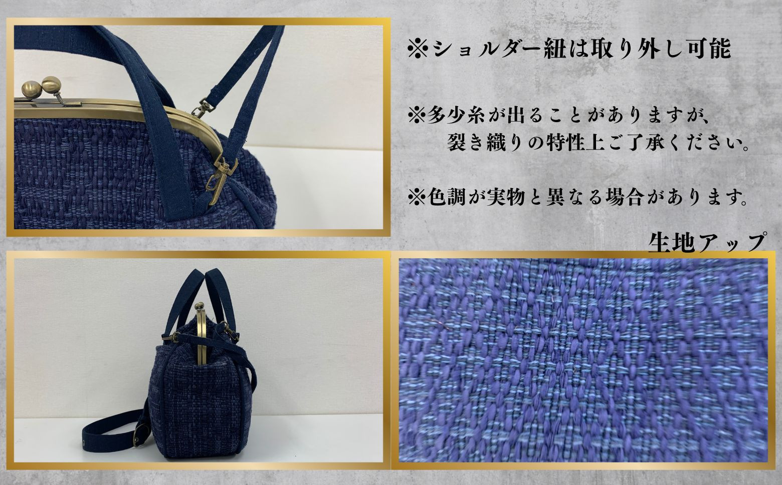 - 裂き織り がま口タイプのショルダーバッグ