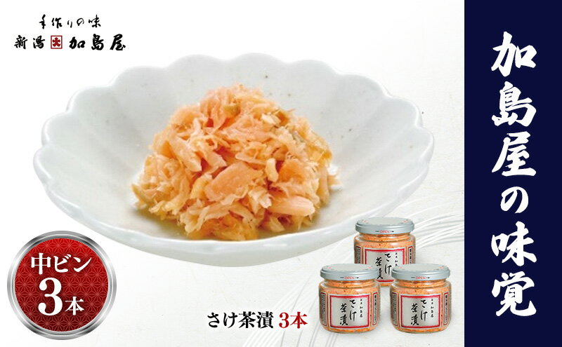 - 【ふるさと納税】加島屋の定期コース(3カ月)さけ茶漬3本 鮭 おつまみ お茶漬け ごはんのお供 フレーク 瓶詰 新潟市