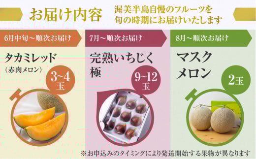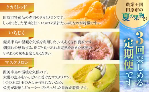 - 先行予約 2026年発送 渥美半島の恵み 夏のフルーツ 定期便 3回 ( タカミレッド / いちじく / マスクメロン) 果物 旬 めろん イチジク 夏 夏季 人気 愛知県 田原市 40000円 頒布会