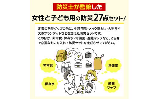 - 防災士監修 防災グッズ 女性と子ども用 セット 27点 防水 多機能リュック 20L 携帯トイレ 清潔用品 ランタン 生理用品 メイク落とし ヘアブラシ 圧縮袋 クッキー 非常用持ち出し袋 防災 防災グッズ 防災用品 災害 非常用 ナテック 送料無料 愛知県 あま市