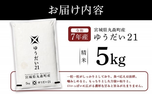 令和7年産 宮城県丸森町産 ゆうだい21 精米5kg | ふるさと納税 宮城県 丸森 米 精米 白米 5kg ゆうだい21 数量限定 宇都宮大学 減農薬 減化学肥料 お取り寄せ ワンストップ マイページ 丸森町ブランド米研究会 丸森町【52001】