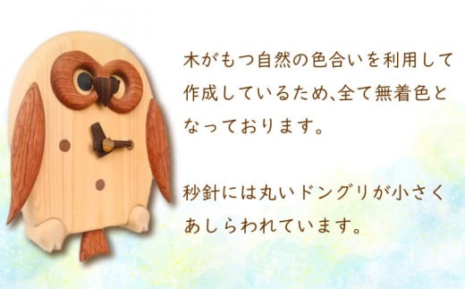 - 時計 木製 木の時計 振り子時計 壁掛け時計 無着色 無塗装 可愛い ペット 鳥 フクロウ オリジナル 手作り ハンドメイド 日用品 雑貨
